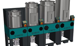 Die gravimetrischen Chargendosierer der SOMOS Batchmix-Serie gibt es in 14 Baugrößen für Durchsätze von 5 bis 3.000 kg/h. Sie sind modular aufgebaut und vielfältig einsetzbar: Das kleinste Gerät der Baureihe hat einen Durchsatz von maximal 50 kg/h und ist mit vier Dosierkomponenten ausgestattet, größere Ausführungen können bis zu zwölf rieselfähige Materialien auf einmal verarbeiten. Dank speziell entwickelter, hochgenauer Dosiervorrichtungen lassen sich mit den Modellen wechselnde Granulat- und Mahlgütermischungen rasch, präzise und jederzeit exakt reproduzierbar herstellen.