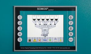 Die Steuerung SOMOS control/professional ist benutzerfreundlich aufgebaut und intuitiv bedienbar. Alle relevanten Funktionen sind schnell am 6“ Touchscreen erreichbar. Über Standardschnittstellen ist darüber hinaus der Datenaustausch mit externen Partnern möglich, beispielsweise für den Import und Export von Rezepten. Eine Selbstoptimierungsfunktion passt außerdem die Dosierung einzelner Komponenten schnell und zuverlässig sich ändernden Gegebenheiten an.