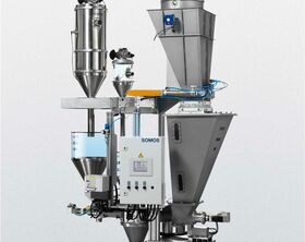 Das gravimetrische Dosier- und Mischsystem SOMOS® Gramix ermittelt das Gewicht von rieselfähigen Kunststoff-Schüttgütern kontinuierlich und hochgenau. Gewonnen werden reproduzierbare Materialmischungen nach vorgegebenen Rezepturen. Schüttgutschwankungen erkennt der kontinuierliche Soll-Ist-Wertevergleich in der Steuerung automatisch und korrigiert bei Abweichung die Drehzahl der Austragsschnecke (Loss-in-Weight-Prinzip). Die Signalkopplung an die Extrudersteuerung (funktionstechnische Kopplung von Dosierung und Förderung) dient dazu, einen Durchsatzsprung zu erkennen und das Regelverhalten zu optimieren.