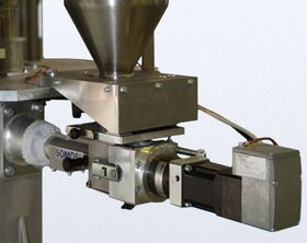 Das gravimetrische Dosier- und Mischsystem SOMOS® Gramix ermittelt das Gewicht von rieselfähigen Kunststoff-Schüttgütern kontinuierlich und hochgenau. Gewonnen werden reproduzierbare Materialmischungen nach vorgegebenen Rezepturen. Schüttgutschwankungen erkennt der kontinuierliche Soll-Ist-Wertevergleich in der Steuerung automatisch und korrigiert bei Abweichung die Drehzahl der Austragsschnecke (Loss-in-Weight-Prinzip). Die Signalkopplung an die Extrudersteuerung (funktionstechnische Kopplung von Dosierung und Förderung) dient dazu, einen Durchsatzsprung zu erkennen und das Regelverhalten zu optimieren.